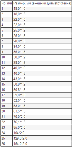 Размеры пищевых нержавеющих труб AISI 304, стандарт DIN 11850